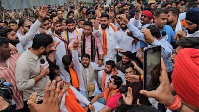 भाजयुमो ने किया कांग्रेस कार्यालय राजीव भवन का घेराव, पुलिस के साथ हुआ झूमा-झटकी