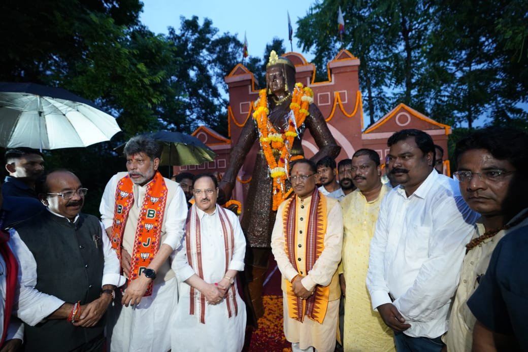 केंद्रीय स्वास्थ्य मंत्री नड्डा ने वीरांगना रानी दुर्गावती की प्रतिमा पर किया माल्यार्पण