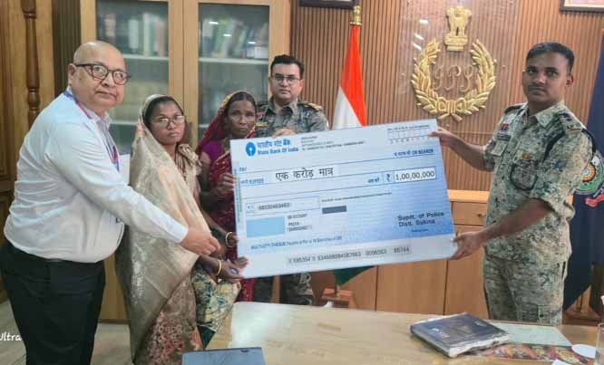 छत्तीसगढ़ शासन द्वारा भारतीय स्टेट बैंक से पुलिस अधिकारी/कर्मचारियों को राहत देने के उद्देश्य से पुलिस सैलरी पैकेज योजना प्रारंभ की गई है, जिसके अंतर्गत विभिन्न घटनाओं में पुलिस कर्मियों को बीमा कर आर्थिक सहयोग प्रदान किया जाता है। पुलिस सैलरी पैकेज अंतर्गत स्व.रामेश्वर नेगी के परिजनों से संपर्क करते हुए एक्सीडेंट का प्रकरण तैयार कर भारतीय स्टेट बैंक के माध्यम से बीमा कंपनी को प्रकरण प्रेषित किया गया। पुलिस सैलरी पैकेज अंतर्गत दुर्घटना अथवा आकस्मिक मृत्यु के समय आश्रितों को राशि रुपये 1 करोड़ रुपये का बीमा प्रावधानित है।आज सोमवार को स्व. रामेश्वर नेगी की पत्नी श्रीमती सुनीता नेगी को किरण चव्हाण, पुलिस अधीक्षक, जिला सुकमा, अभिषेक वर्मा, अतिरिक्त पुलिस अधीक्षक, जिला सुकमा एवं प्रवीण झा, शाखा प्रबंधक, भारतीय स्टेट बैंक, सुकमा, जिला सुकमा द्वारा बीमा राशि एक करोड़ रूपये मात्र का भुगतान किया गया।