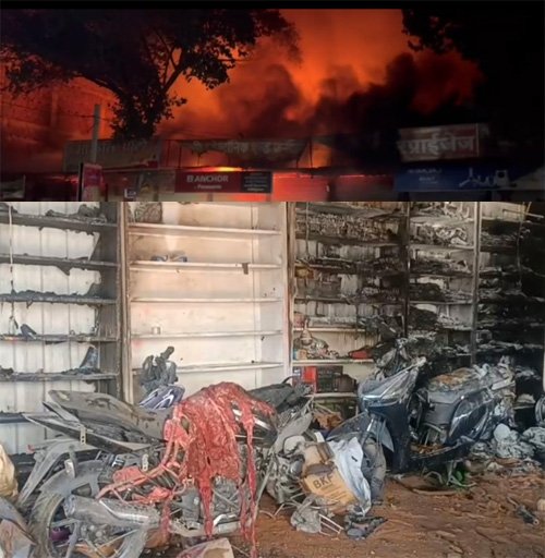 अंबेडकर चौक क्षेत्र में ऑटो, फर्नीचर और डेकोरेशन से जुड़ी आठ दुकानें जलकर खाक