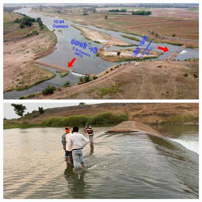 इन्द्रावती-जोरा नाला कंट्रोल स्ट्रक्चर में अस्थाई व्यवस्था से छग काे 2 क्यूमेक से बढ़कर 5.32 क्यूमेक पानी मिलने लगा